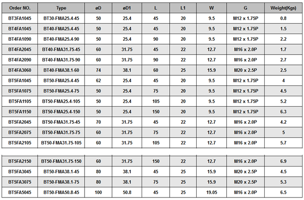BT/FMB FACE MILL ARB