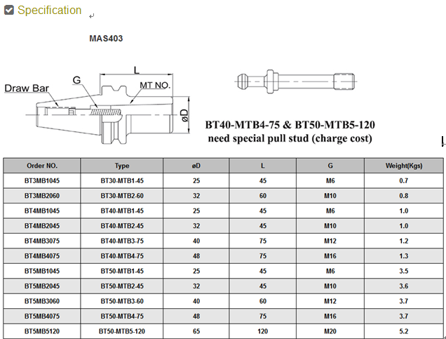 • Product description: BT/MTB MORSE TAPER ADAPTOR:BT30→M12 x 1.75P,BT40→M16 x 2.0P,BT50→M24 x 3.0P